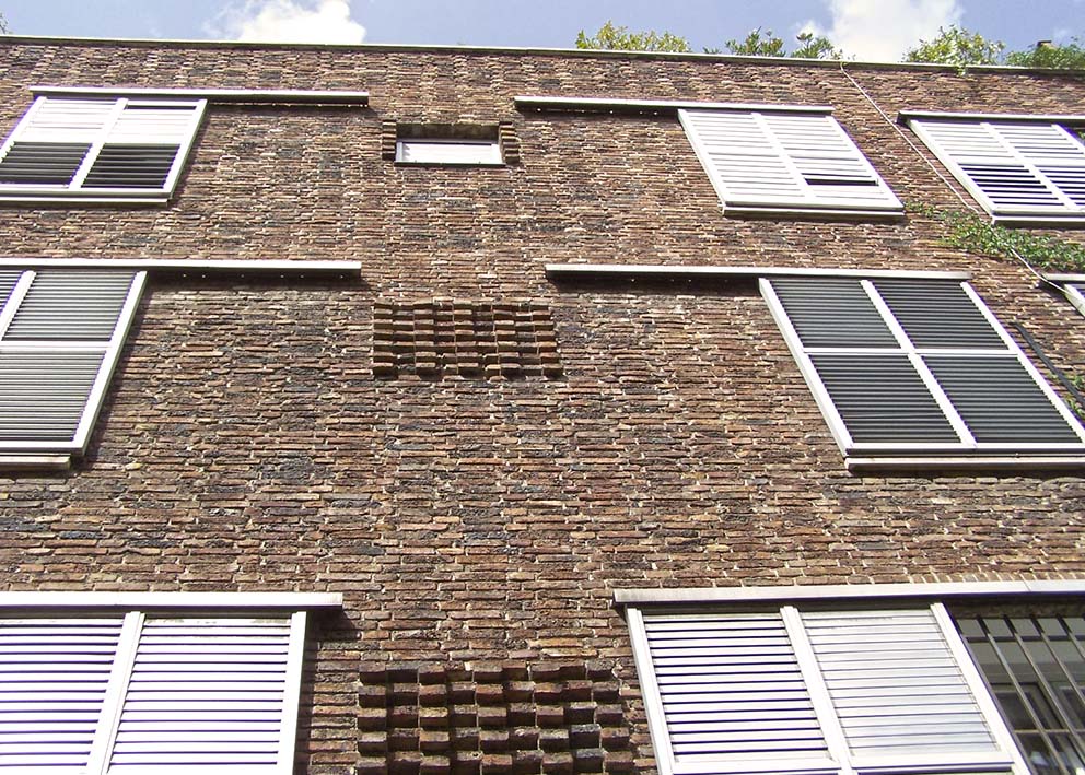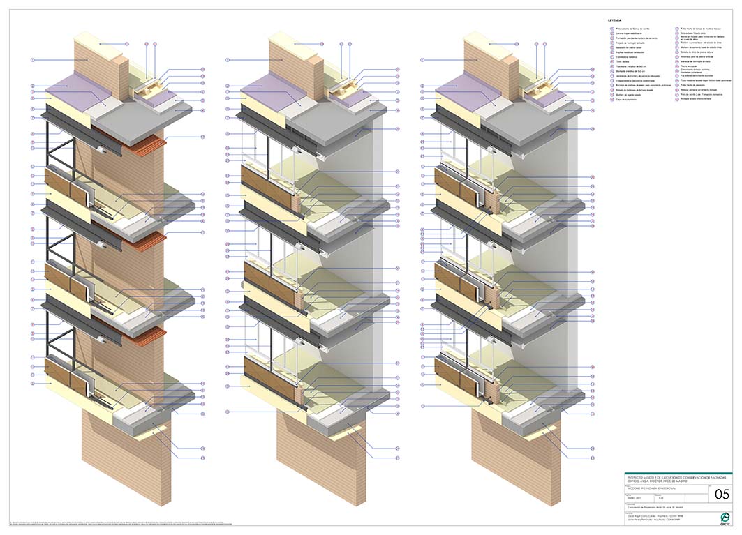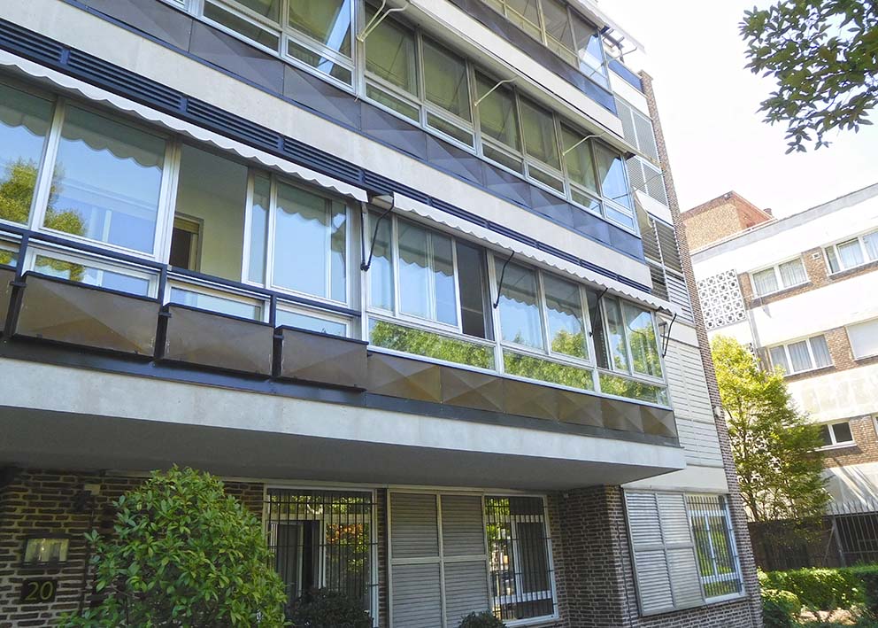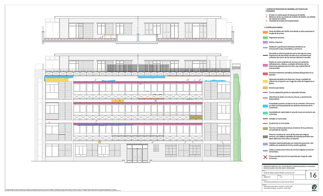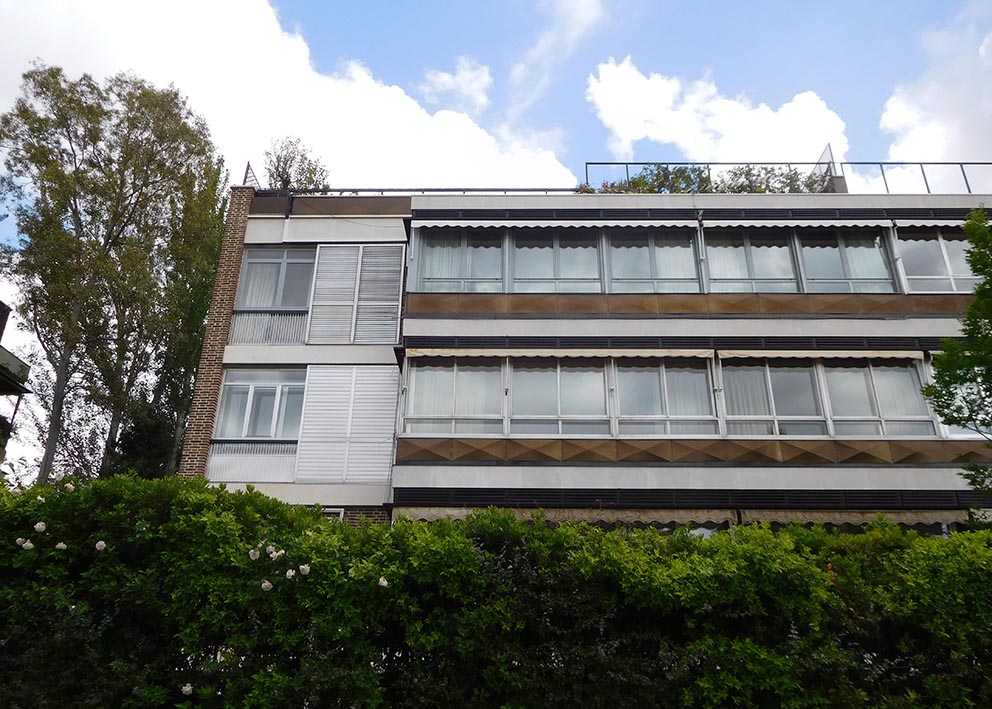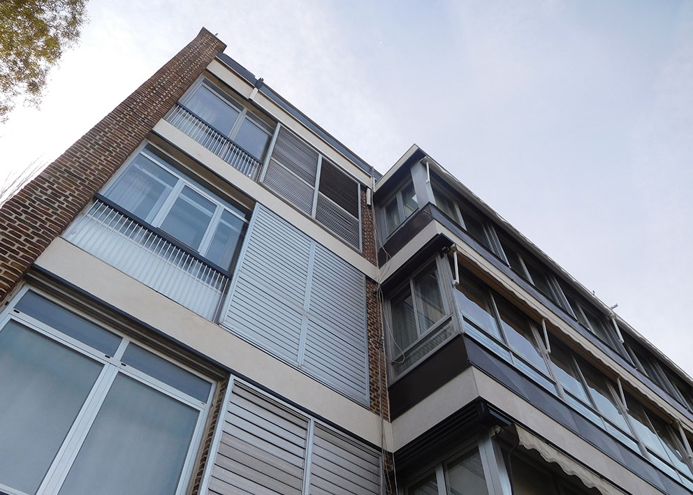 Conservación de fachadas de edificio de viviendas. Construido en 1960. Proyectista: Arq. Luis Gutiérrez Soto.