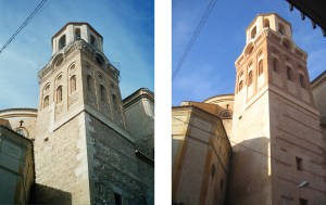 Estado previo y restaurado de la torre.